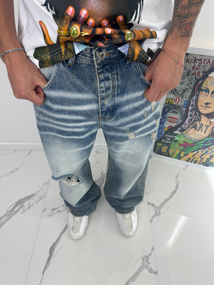 Il Baggy 01 Sabbiato è un paio di jeans realizzati in Italia che uniscono stile e qualità. Con un lavaggio chiaro e un effetto sabbiato, questi jeans aggiungono un tocco di personalità al tuo look. Le rotture creano un aspetto casual-chic, perfetto per ogni occasione. Renditi unico con il Baggy 01 Sabbiato.