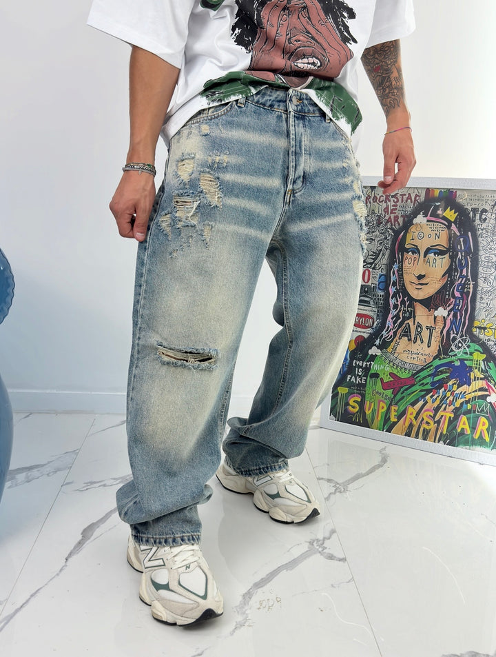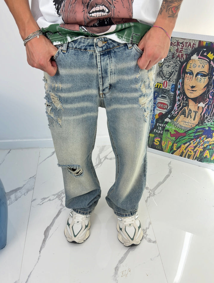 Ijeans baggy Baggy Cloud 29 sono un must-have per chi ama uno stile casual ma di tendenza. Realizzati con un lavaggio chiaro sabbiato e rotture strategiche, questi jeans trasmettono un'immagine giovane e ribelle. Perfetti per un look originale e versatile.