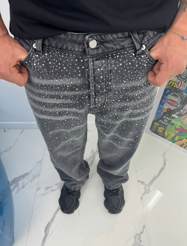 Realizzato in Italia con un lavaggio grigio scuro e brillantini, il Baggy Diamond 41 è il perfetto accessorio di moda per la donna moderna che vuole unire stile e comfort. Realizzati con jeans baggy di alta qualità, questi pantaloni offrono un look elegante e luccicante per ogni occasione.