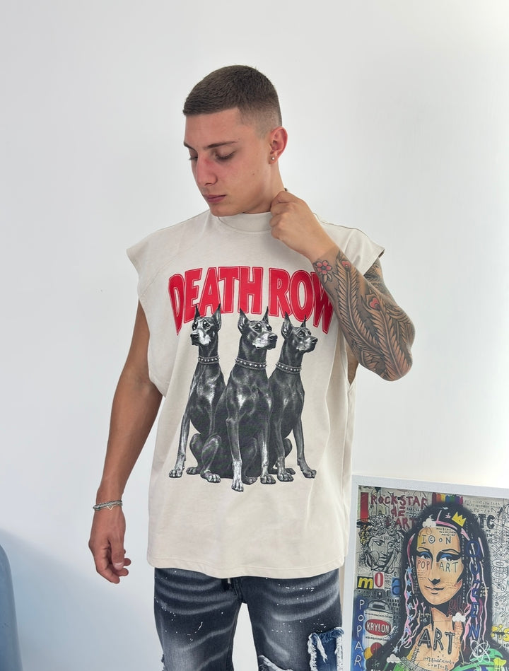 Questa Canotta Death Ron è perfetta per gli amanti del metal! Realizzata in morbido cotone, presenta un design unico e audace sul fronte che non passerà inosservato. Con il suo stile giromanica, sarà comoda e leggera da indossare durante i concerti e i festival estivi.