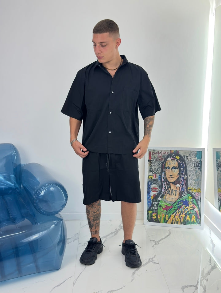 I nostri coordinati di base sono ideali per un look moderno e originale. La camicia con la stampa originale sul retro è perfetta per esprimere la tua personalità, mentre il pantaloncino con la molla in vita offre il massimo comfort e praticità. Non perdere l'opportunità di essere sempre fashion con Coordset Disorder.