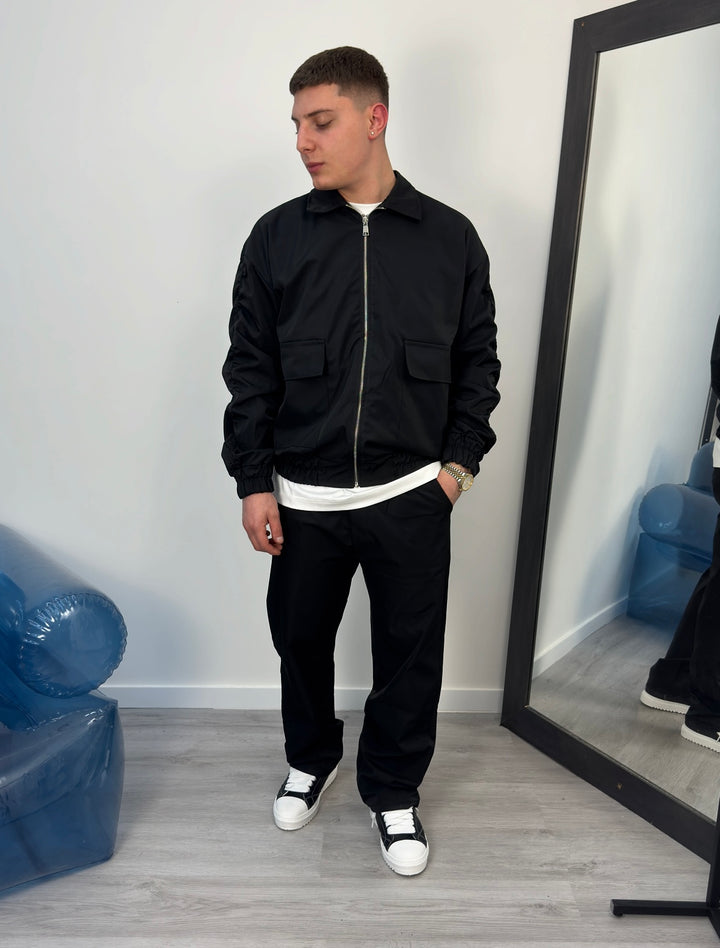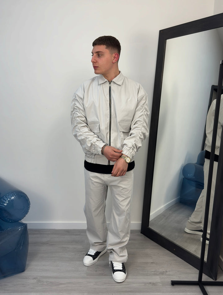 Coordset Drapped è il coordinato perfetto per un look elegante e sofisticato. La giacca con zip si abbina perfettamente al pantalone fondo ampio, con una vita elasticizzata e dettagli drappeggiati sulle maniche e sul retro. Aggiungi un tocco di stile al tuo guardaroba con questo capo versatile e di tendenza.