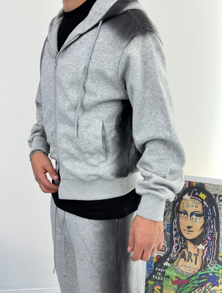Il coordinato fumè è l'ideale per lo sport e il tempo libero. La felpa con cappuccio e zip garantisce una vestibilità comoda e una protezione extra dal freddo. Il pantalone fumè è realizzato in materiale resistente e traspirante per un comfort duraturo. Perfetto per un look sportivo e alla moda.