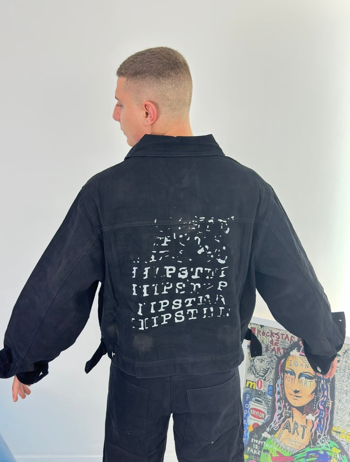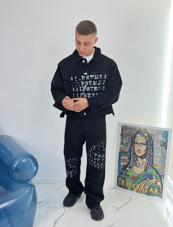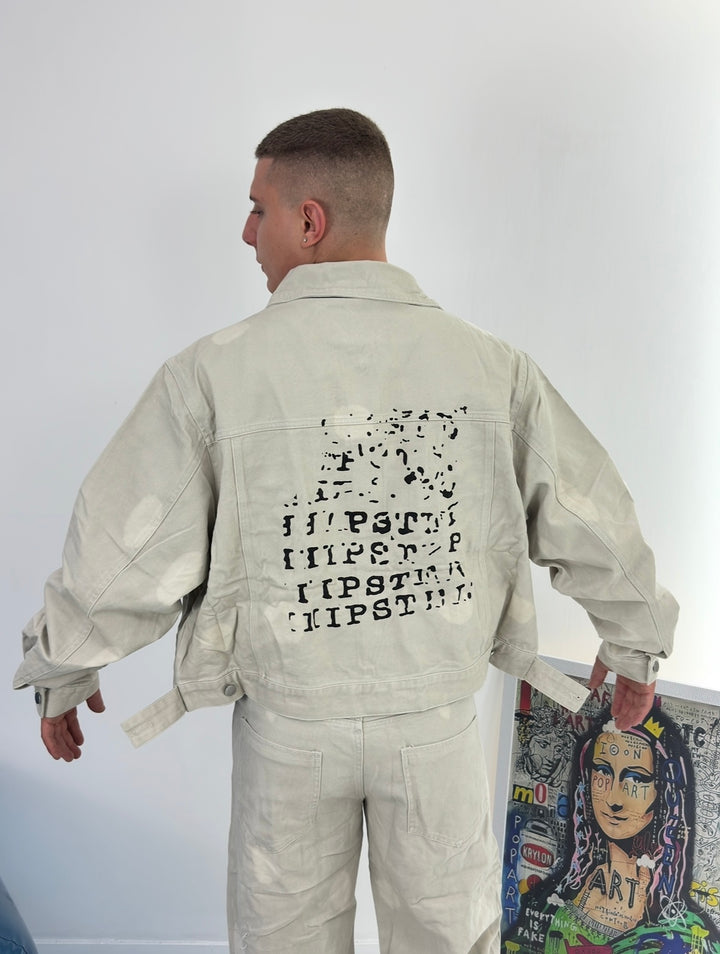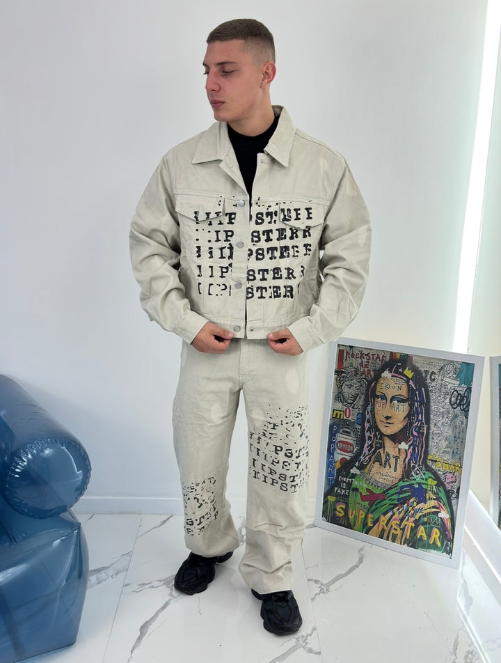 Esaltate la tua moda con il Coordset Hipster. Questo coordinato in jeans comprende una giacca e un pantalone con una grafica unica sul fronte. Sia casual che alla moda, questo look ti farà distinguere dalla folla.