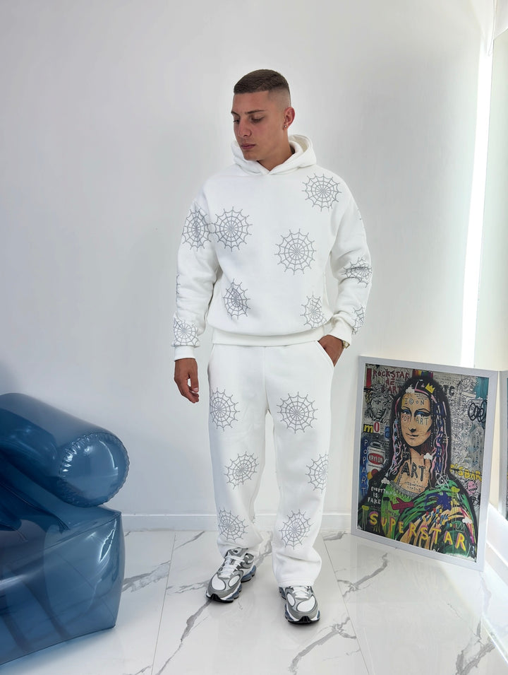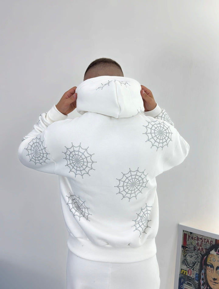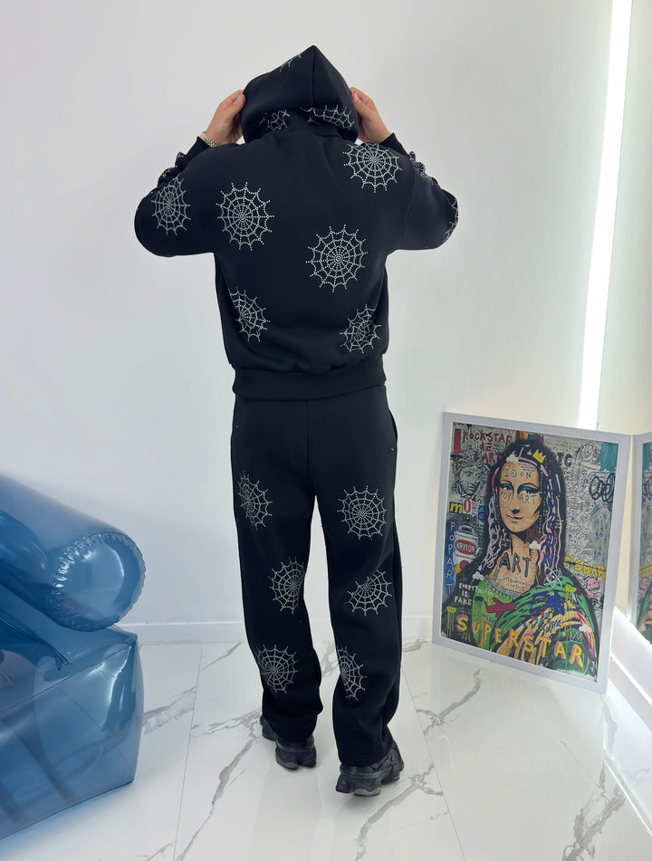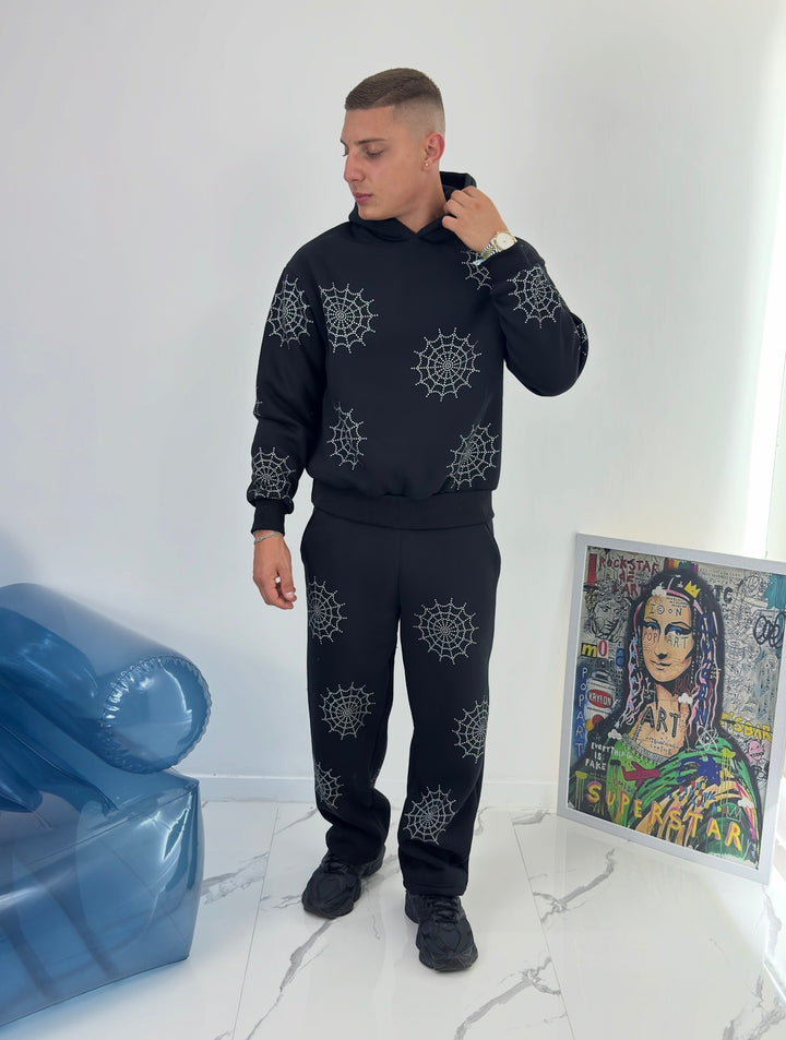 Il Coordset Spiderweb è un coordinato unico, perfetto per le giornate fredde. Il cappuccio e il pantalone sono realizzati con un tessuto morbido che garantisce il massimo comfort. I disegni brillanti aggiungono un tocco di stile e originalità al tuo look. Preparati a scatenare l'aracno vibe!