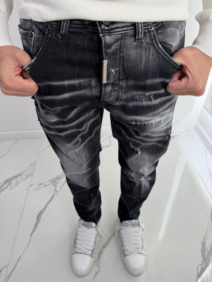 I jeans K80 sono realizzati in Italia, dal taglio slim fit e dal lavaggio grigio scuro con sfumature bianche. Prodotti con attenzione ai dettagli, offrono un'ottima vestibilità e uno stile moderno. Ideali per un look casual ma ricercato, questi jeans sono perfetti per ogni occasione.