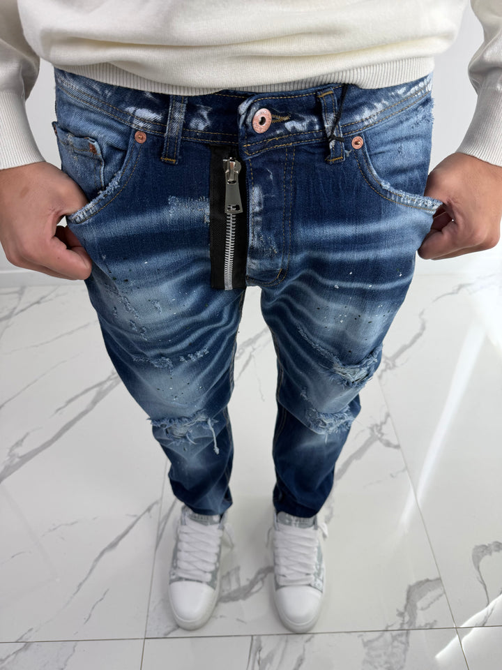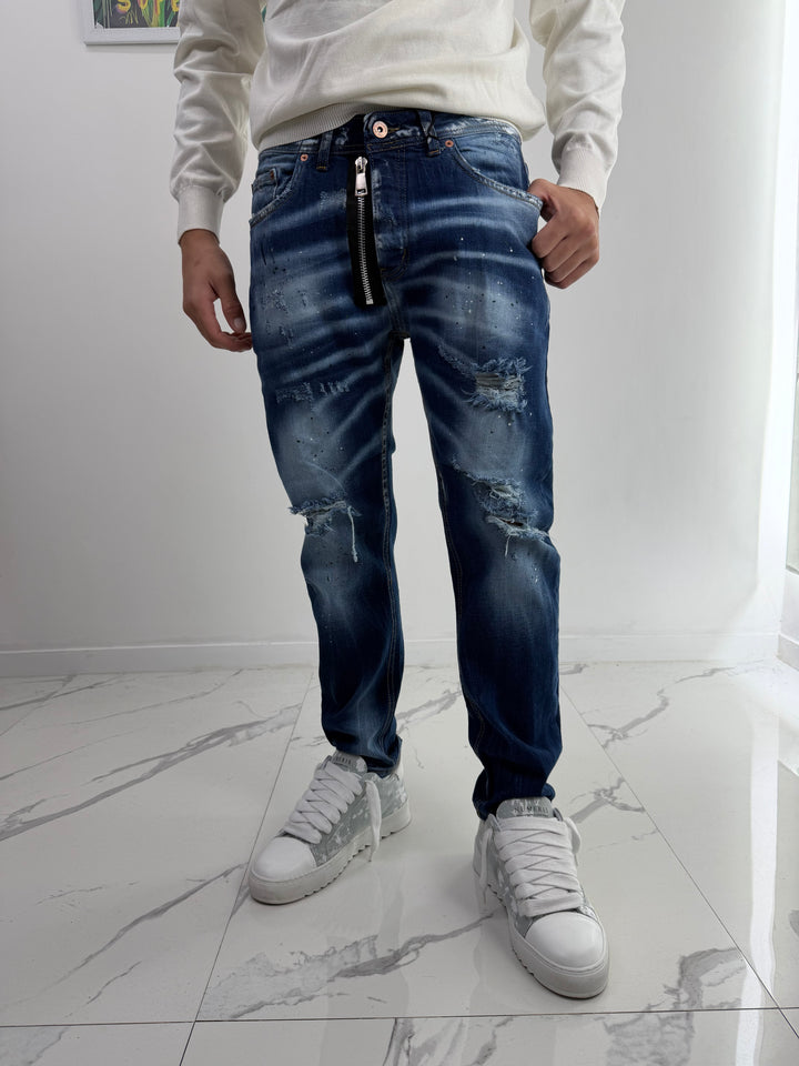 Jeans sottile e comodo, prodotto in Italia con cura utilizzando tessuti di alta qualità. Il lavaggio blu con sfumature bianche conferisce un aspetto unico e alla moda. Vestibilità snella garantisce un look moderno e stiloso. Ideale per completare qualsiasi outfit casual o elegante.
