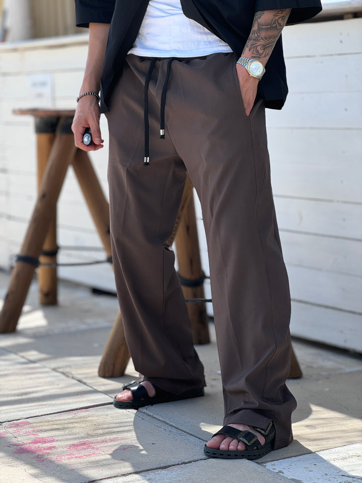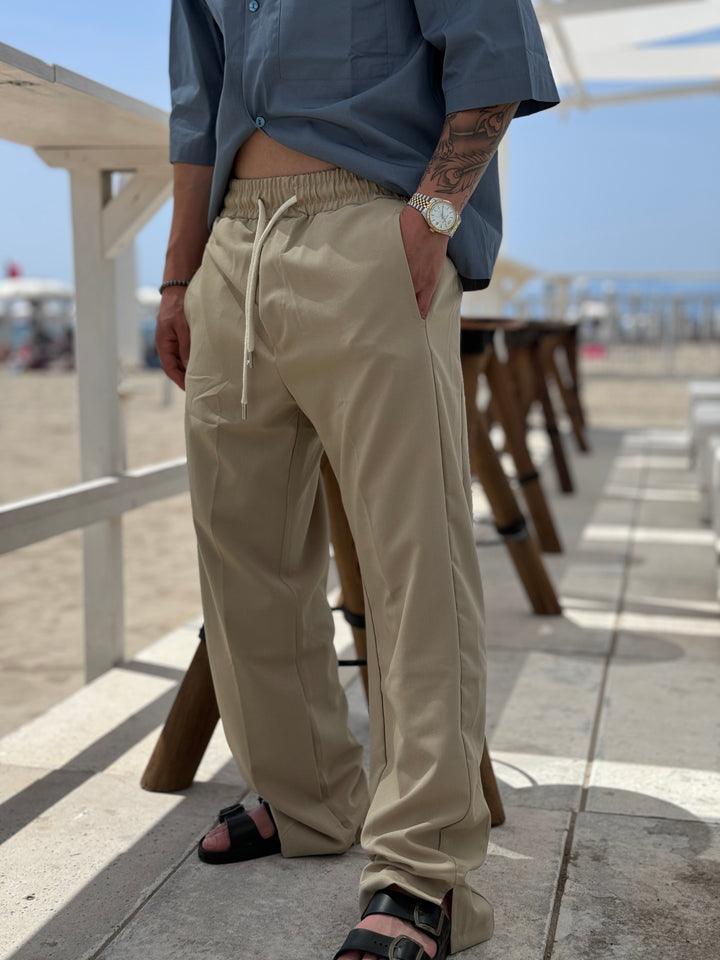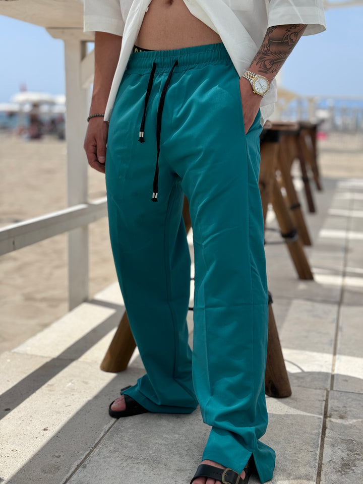 Pantaloni oversize con comoda cintura elastica e spacco a fondo gamba per un look trendy e casual. Tessuto leggero e fresco per un comfort impeccabile. Stile versatile per ogni occasione.