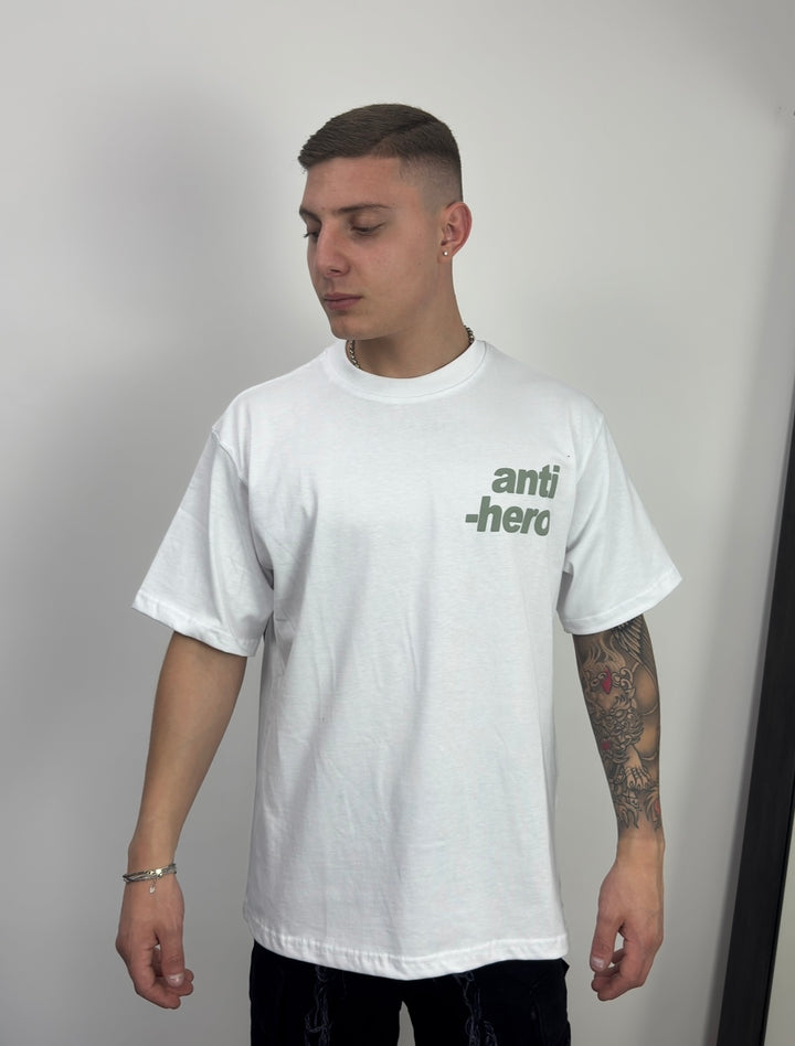 Questa t-shirt bianca e verde è una scelta essenziale per il tuo guardaroba. Il design minimalista con scritta rialzata e gommata sul retro conferisce un tocco unico a questo capo basic a mezzo collo. Versatile e di tendenza, è perfetta per un look casual e urbano.