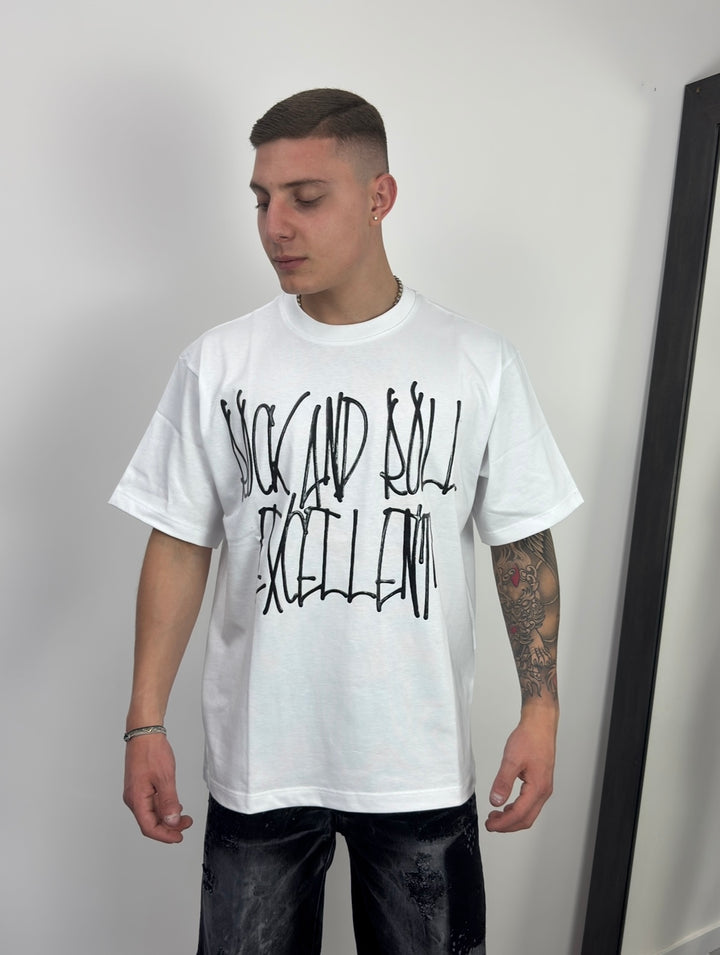 Realizza il tuo look con la nostra T-shirt Excellent. Realizzata con cotone di alta qualità, è caratterizzata da una scritta gommata sul fronte che aggiunge un tocco di stile unico. Il comfort e lo stile si fondono in un unico capo. Perfetta per ogni occasione.