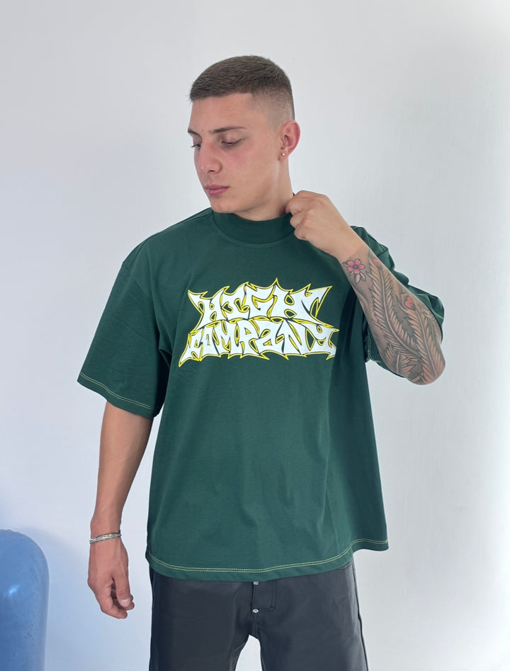 La maglietta T-shirt High è caratterizzata da un design semplice ma d'effetto, con una scritta gommata sul fronte e cuciture a contrasto. Realizzata in morbido cotone, garantisce comfort e stile unico. Perfetta per un look casual ma alla moda.