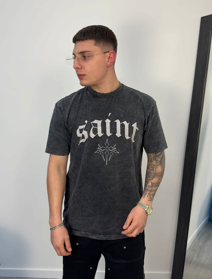 Il T-shirt Saint Washed è perfetto per chi ama lo stile casual ma ricercato. Realizzato con un tessuto morbido e slavato, questo t-shirt presenta una scritta sul fronte per un tocco di originalità. Ideale per completare il tuo look con un tocco di eleganza informale.