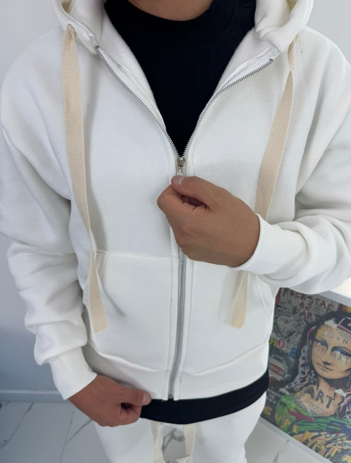 Il Coordinato Tracksuit con zip e cappuccio è perfetto per il tuo allenamento grazie alla morbidezza del cotone e alla molla in vita per una vestibilità comoda. Il fondo ampio dei pantaloni assicura libertà di movimento mentre ti alleni. Completa il tuo look con questi lacci resistente per obiettivi di lunga durata.